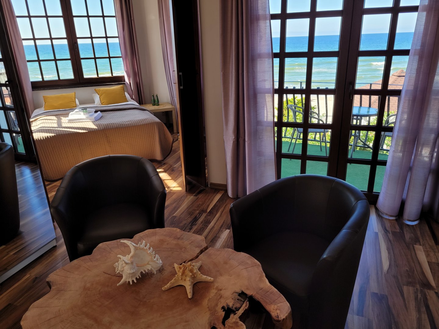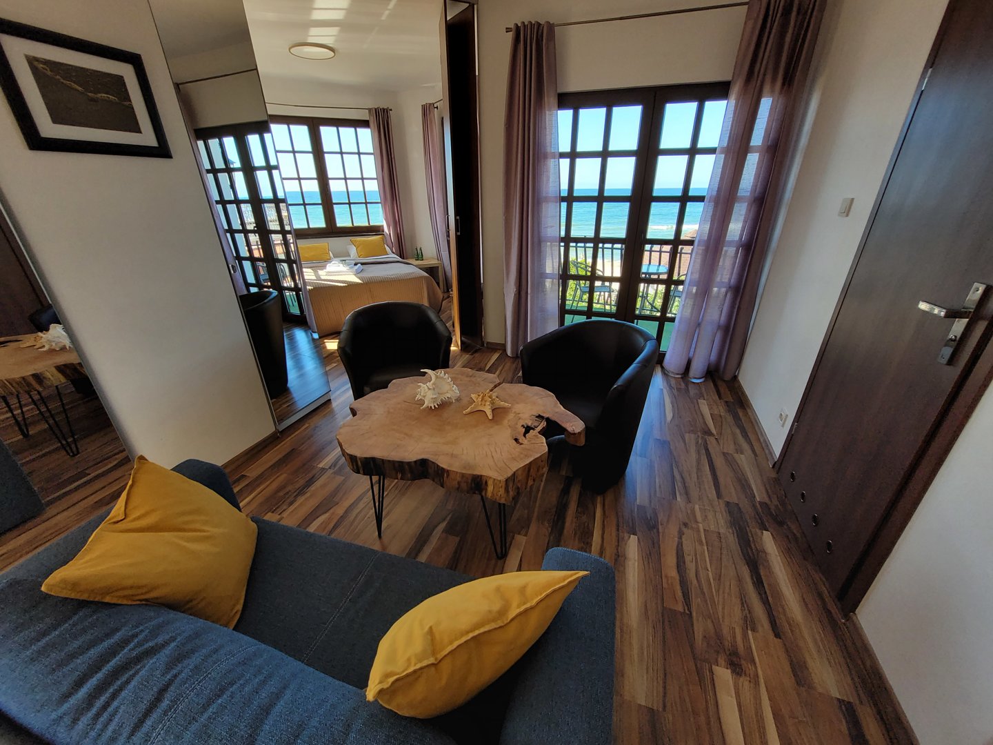 Luksusowy apartament o wysokim standardzie wykończenia, ze spektakularnym, panoramicznym widokiem na morze oraz na ogród: dwa pomieszczenia z możliwością połączenia w jedno - ruchoma ścianka działowa. Przestronny, dwie części pokoju w układzie 3os + 3os - doskonała propozycja dla dwóch rodzin.