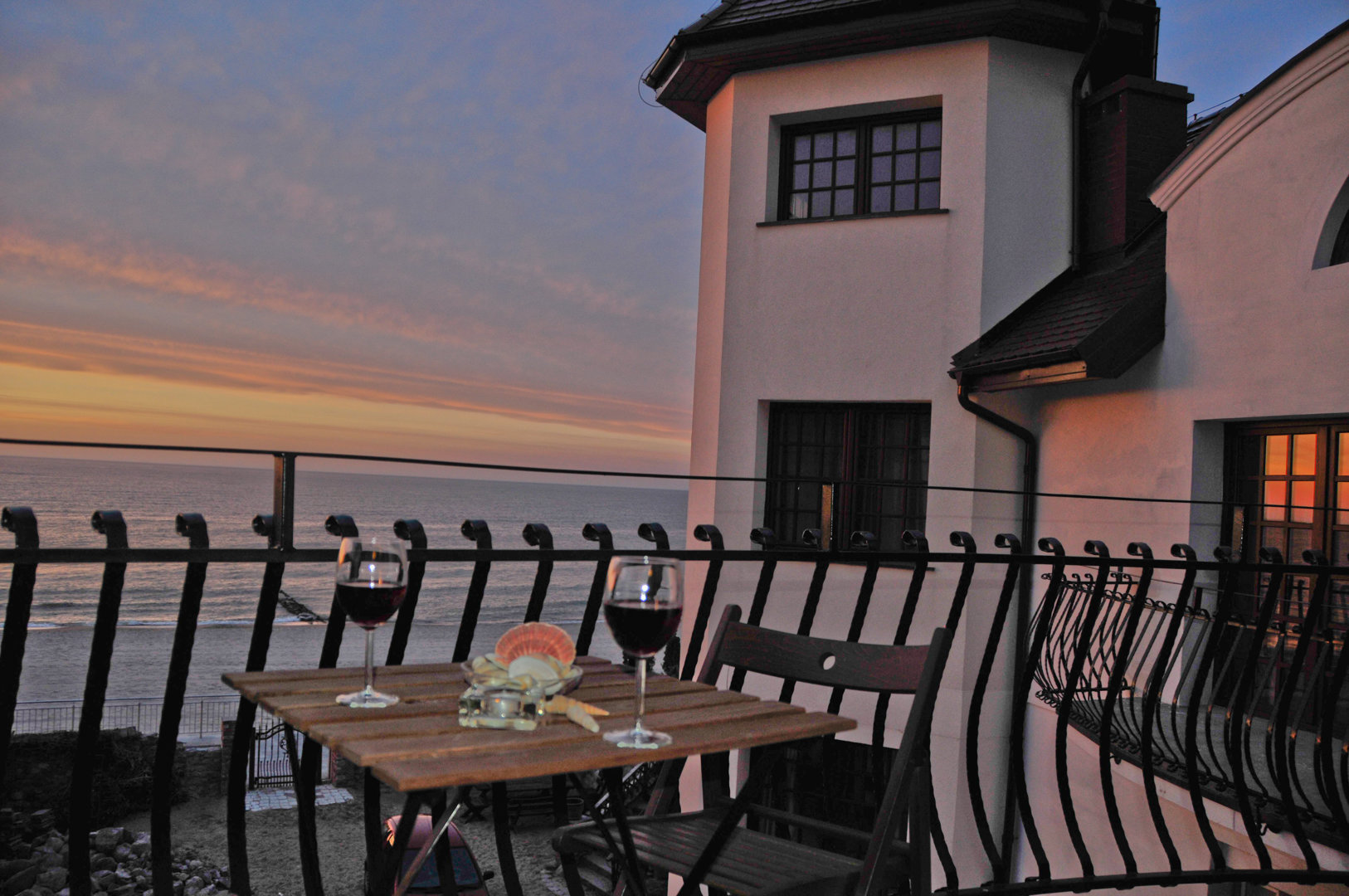 Komfortowy pokój studio z aneksem kuchennym, usytuowany na parterze tuż obok wejścia bezpośredniego na plażę i promenadę, z niezależnym wyjściem do ogrodu i własnym tarasem ogródkiem oraz częściowym widokiem na morze.